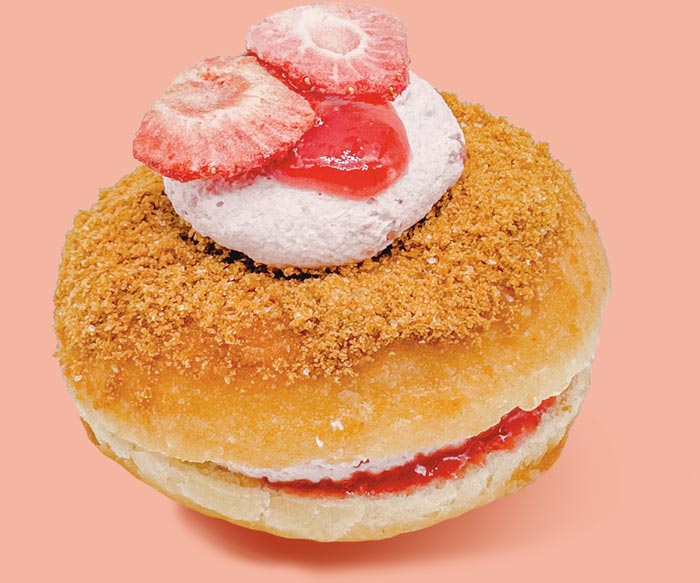Unser Lotus Strawberry Donut vereint einen fluffigen Donut mit einer zartschmelzenden Erdbeercreme, die süß und leicht fruchtig auf der Zunge liegt. Getoppt mit knusprigem Lotus-Crumble trifft cremige Erdbeere auf karamellige Keksnote – ein kleiner, ganz besonderer Moment.