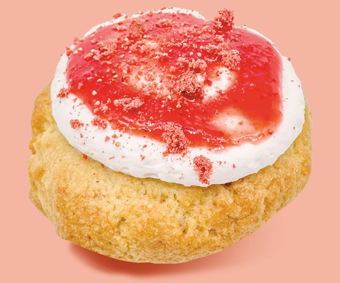 Außen knusprig, innen überraschend weich: Ein goldbraun gebackener Keks mit fruchtigem Erdbeerkern und einer angenehm frischen Creme. Veredelt mit gefriergetrockneten Erdbeeren entsteht ein ausgewogener, sommerlicher Moment mit feiner Süße.