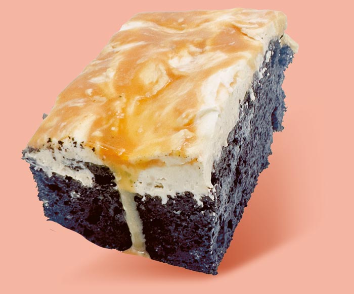 Herrlich saftig, intensiv schokoladig und getoppt mit weichem Toffee-Fudge. Jeder Bissen schmilzt auf der Zunge und sorgt für einen süßen, wohlig warmen Moment.